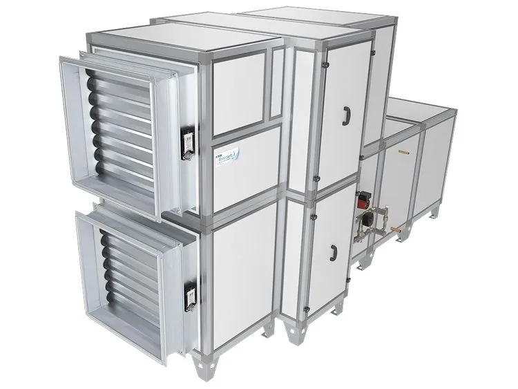 Приточно-вытяжная установка с водяным нагревателем, роторным рекуператором и фреоновым охладителем